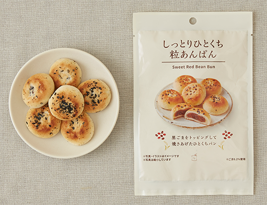 黒ごまをトッピングして焼きあげたひとくちあんパンです。
